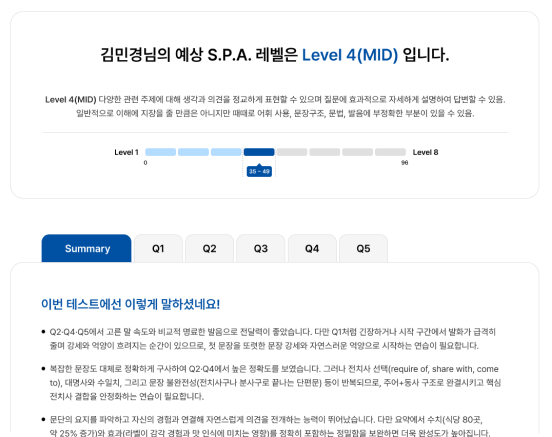 문장/단어 난이도 등 다양한 기준으로 평가가 진행됩니다.